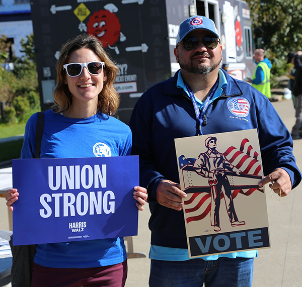 - We’re watching in real time the richest people in this country attempt to buy the election for candidates who will cater to their interests and dismantle workers’ rights. But here’s the thing: All the money in the world can’t buy what we have as a labor movement—our infrastructure, our know-how, our trust that we’ve built over years and years. We know how to out-organize greedy bosses—and we’re going to do it again in this election. All across the country right now, union members are hitting the pavement to knock on doors, phone banking and having worker-to-worker conversations about what’s at stake this election.