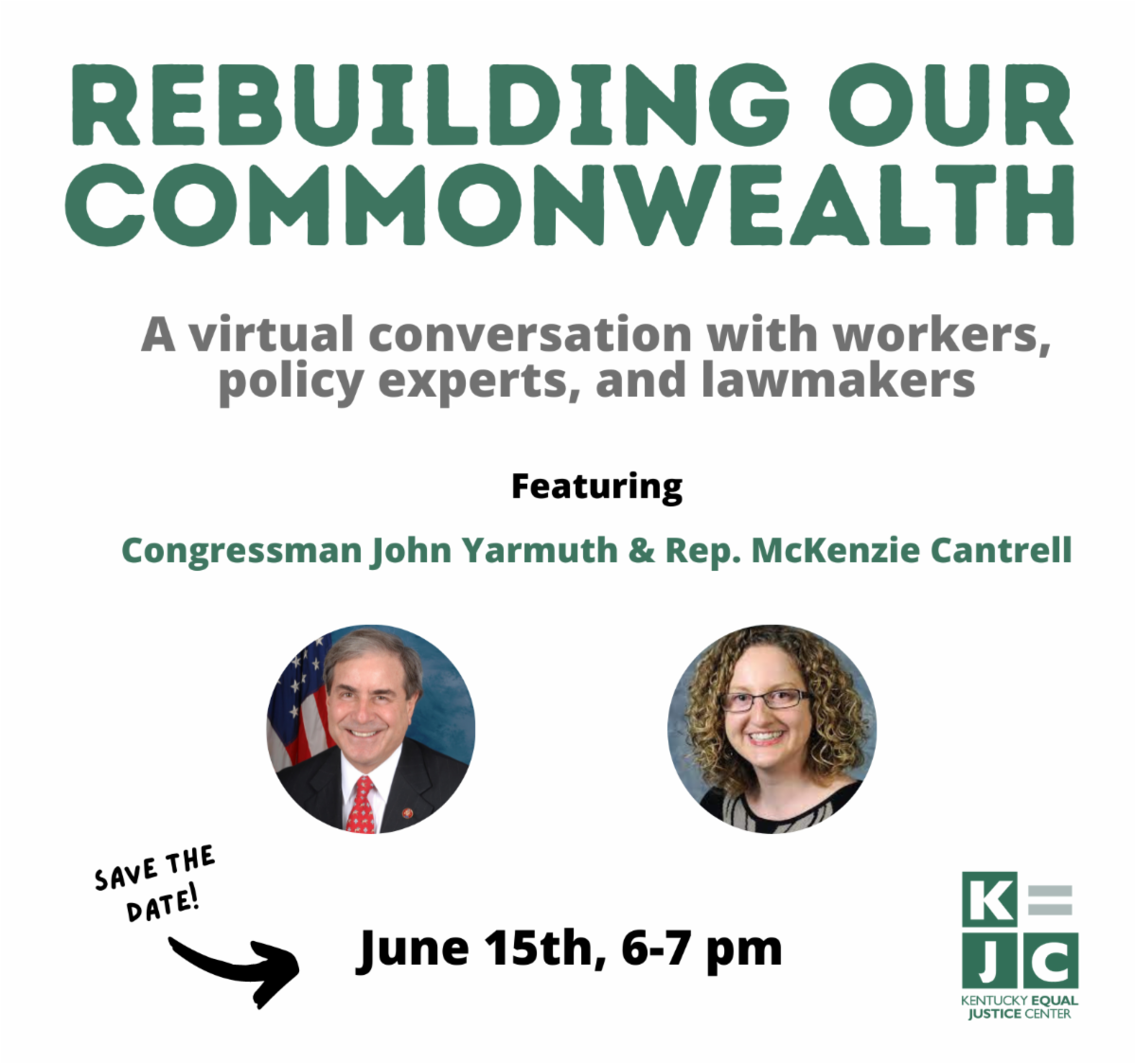 Join us tomorrow night (June 15th) at 6pm EDT for a Workers' Rights Town Hall, hosted by our friends at the Kentucky Equal Justice Center, featuring Congressman John Yarmuth, State Rep. McKenzie Cantrell, our own KY AFL-CIO President Bill Londrigan, & workers from around KY for a panel discussion on what federal infrastructure bills could mean for Kentucky workers and families across the Commonwealth.